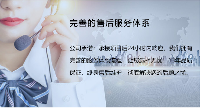 公司擁有完善的服務(wù)體系流程,讓您選擇無 憂!13年品質(zhì)保證,終身維護,徹底解決您 的后顧之憂